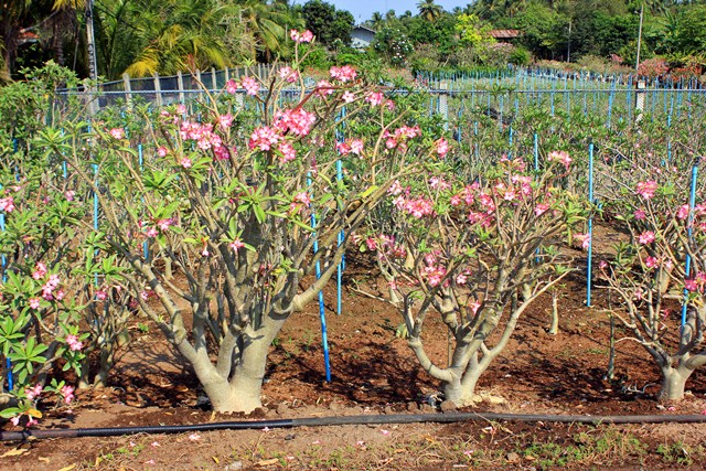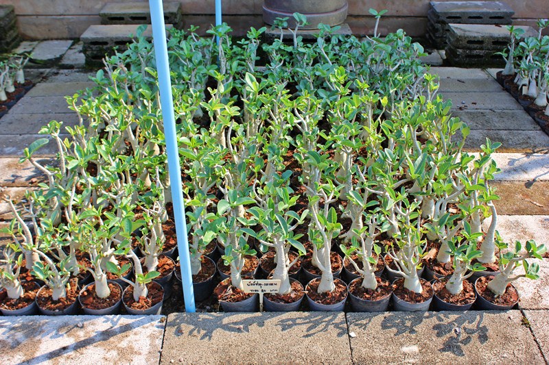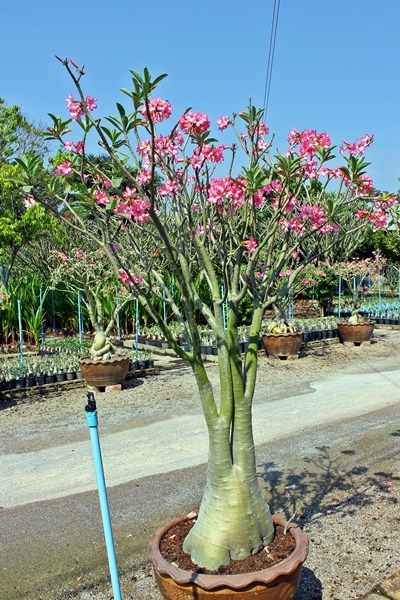 ชวนชมชนิดนี้ส่วนใหญ่ทะยอยนำเข้ามาในประเทศไทย ทั้งเมล็ด กิ่ง และต้น จากผู้ที่เคยทำงานในตะวันออกกลางตลอดระยะเวลาประมาณ 20 ปี ที่ผ่านมา ซึ่งได้มาจากหลายแหล่ง หลายสายพันธุ์ ชวนชมชนิดนี้มีอัตราการเจริญเติบโตเร็วกว่าชวนชมพื้นเมืองทั่วไป เพราะโขดมีขนาดใหญ่กว่ามาก ในบ้านเรานั้นมักเรียกชื่อสายพันธุ์ตามแหล่งที่นำไปเพาะเลี้ยง เช่น ยักษ์ลพบุรี ยักษ์สิงห์บุรี เพชรเมืองคง(โคราช) เป็นต้น ซึ่งแต่ละสายพันธุ์ก็มีความแตกต่างกันไป ปัจจุบันมีการปรับปรุงและพัฒนาสายพันธุ์ไปมาก ลูกไม้ที่ได้จากการเพาะเมล็ดรุ่นใหม่ในประเทศไทยมีเอกลักษณ์แตกต่างจากสายพันธุ์ดั้งเดิมมาก